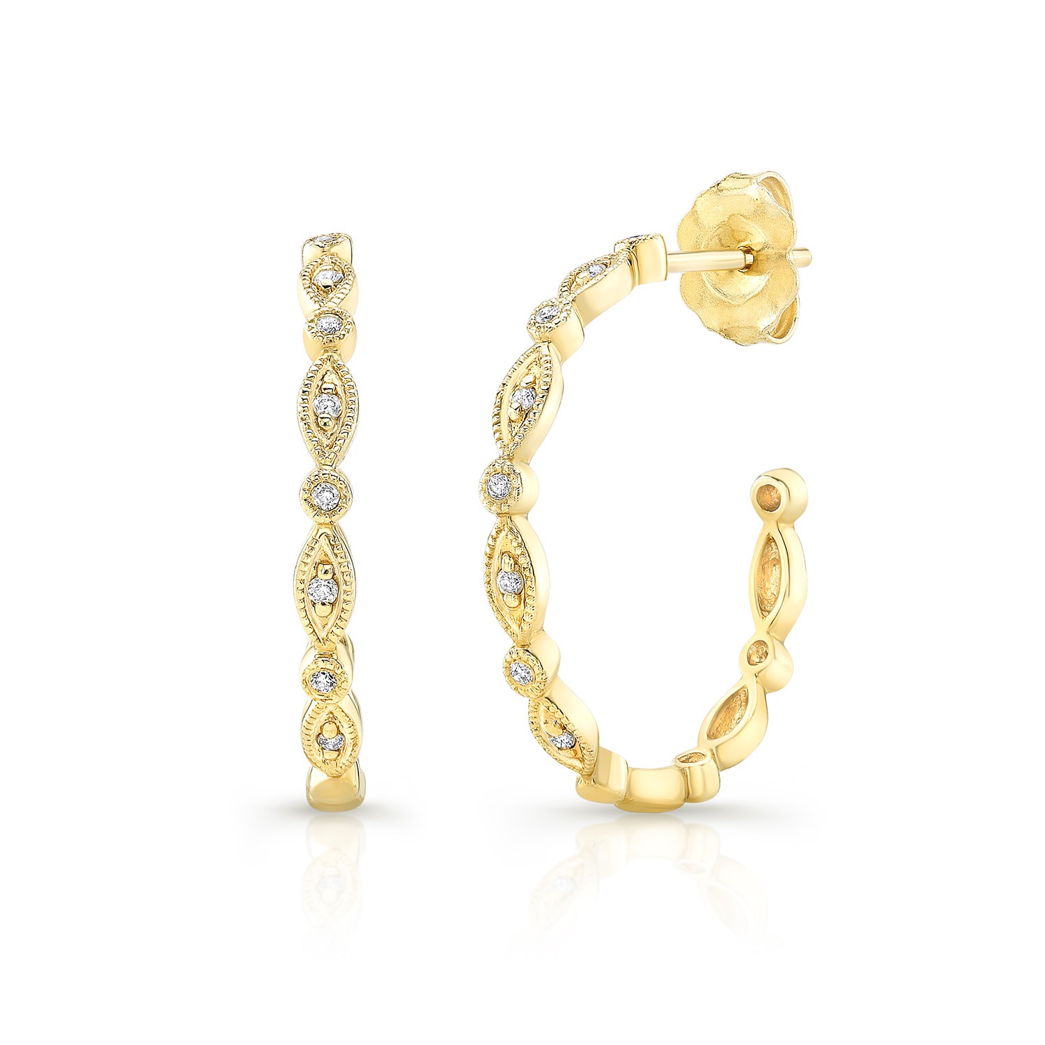 Yellow Gold 3/4 Inch Milgrain Hoops