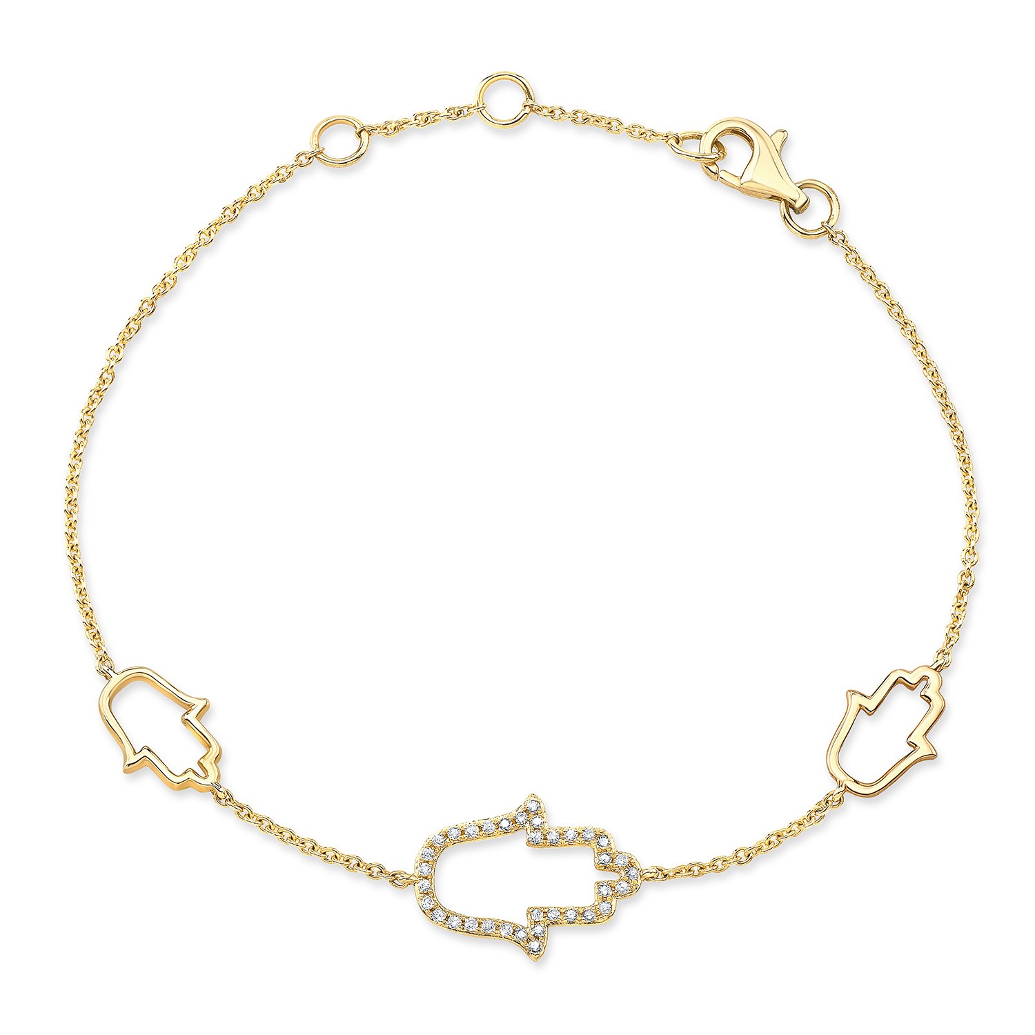 Yellow Gold Piety 3 Stationed Hamsa Bracelet