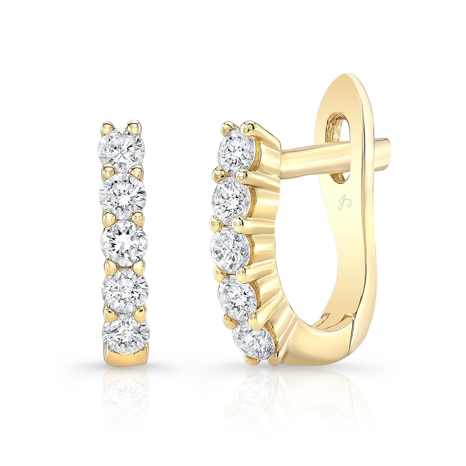 Yellow Gold Prong Set Mini Huggie Hoops